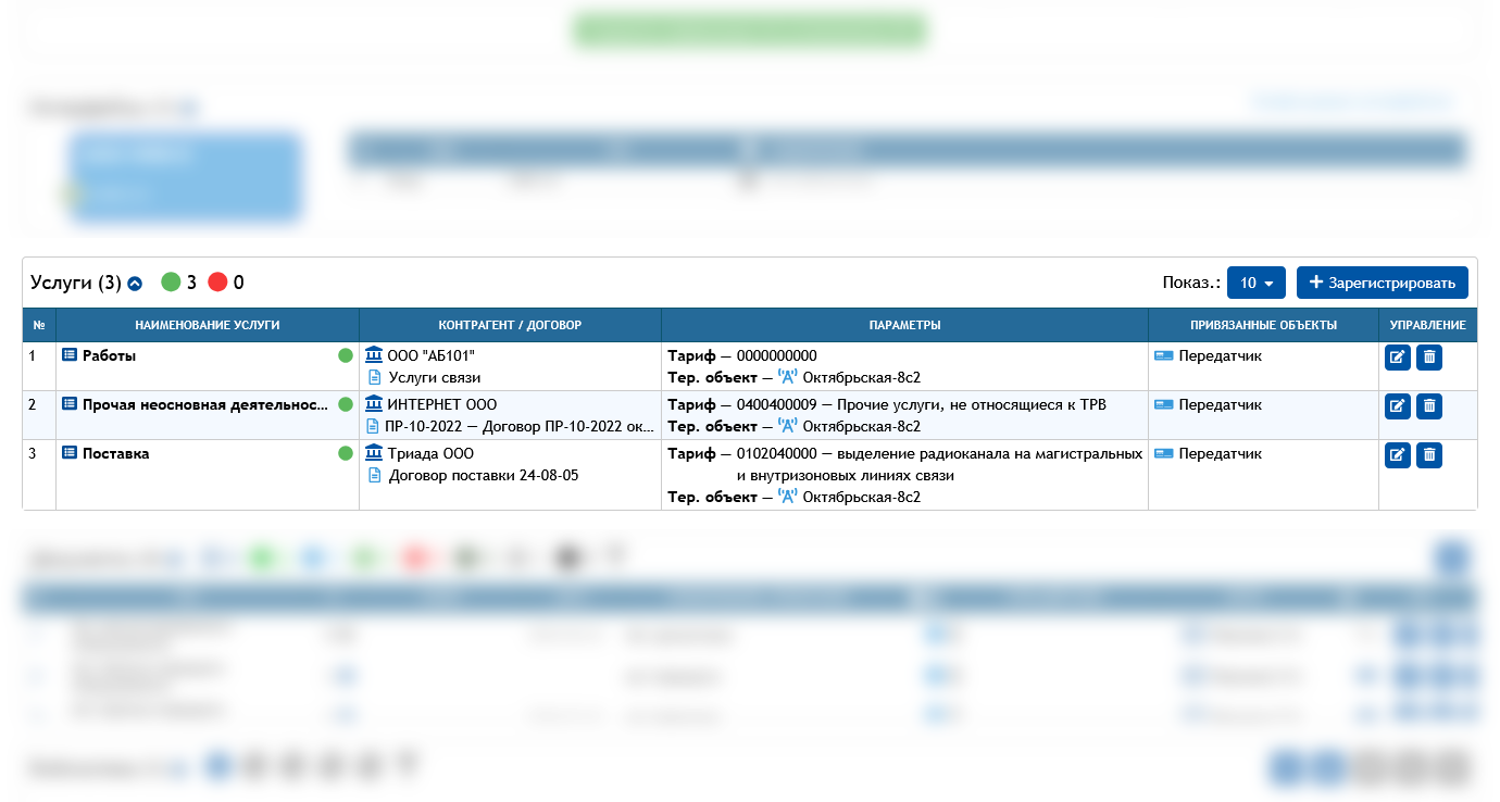 Отображение перечня услуг в карточке оборудования с возможностью управления существующими услугами, а также регистрации новых оказываемых услуг